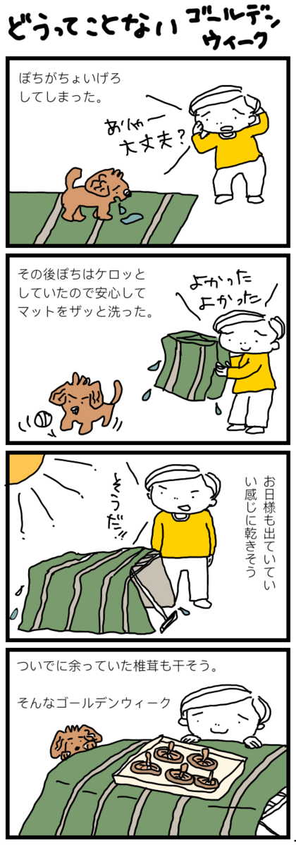 2023-05-01 どうってことないゴールデンウィーク ゆるい日常 皆さん、ゴールデンウィークいかがお過ごしですか?出不精な私はこれといって予定もなくゆっくりと過ごす予定です。 椎茸は後日、煮物にでも入れましょう。 ランキング参加中主婦 ランキング参加中【公式】ミニブログ ランキング参加中コミックエッセイ