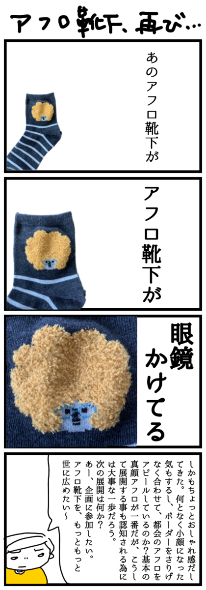 2023-09-30 アフロ靴下、再び… ゆるい日常 またまたアフロ靴下情報でした〜。 全くどうでもいい方にとっては「?」ですよねぇ〜。 どうぞ、100均のseriaに行った際にはちょっと見てみてくださいね。 ランキング参加中主婦
